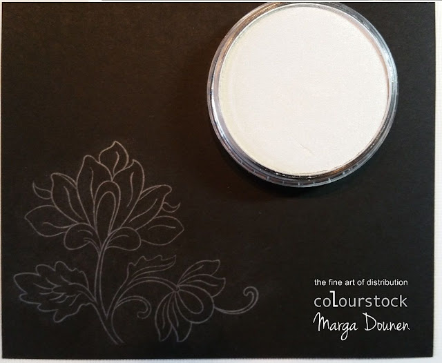 Ik heb hier wat Ara Titaanwit op mijn craftsheet gedaan en met de crackle stempel weer wat crackles gestempeld. Pas wel op dat je de stempel daarna meteen schoonmaakt